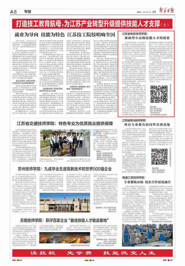 《新华日报》A8版—江苏省MK在线(中国)唯一官方网站:紧缺型中高级技能人才的