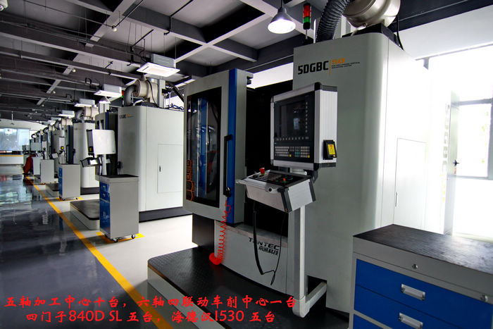 五轴加工实训基地包含:五轴加工中心实习区、三维成型室、精密加工室、精密测量室,配置企业生产型五轴加工中心10台、五轴雕铣机、六轴滚齿机、五轴水切割机、三维快速成型机、三坐标测量仪等。