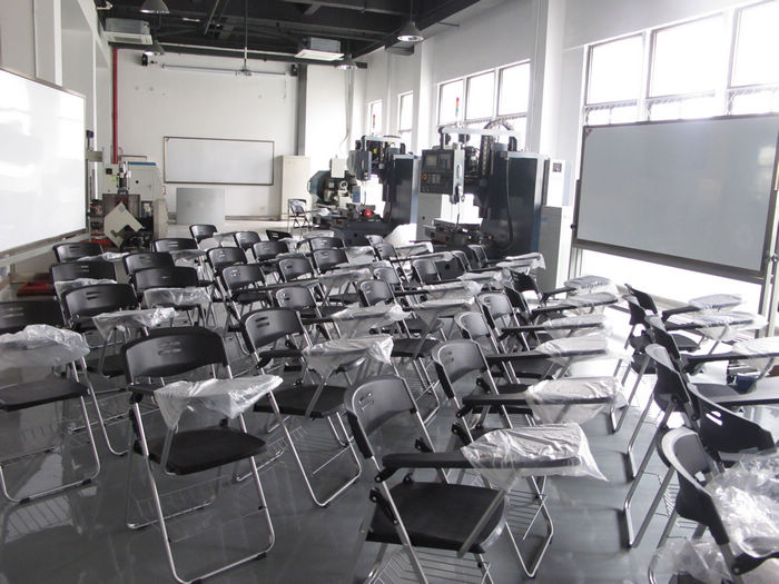2011年11月对原有数控实训场地进行了全面改造,所有设备通过政府公开招标采购,于2012年7月完成一期设备安装、调试,并投入使用。二期高档设备的安装调试于2013年1月完成,并已投入使用。数控实训中心在原有条件的基础上新建整合5个实训基地,配仿真教学实训室8个。