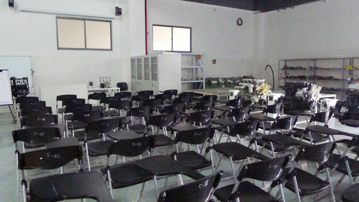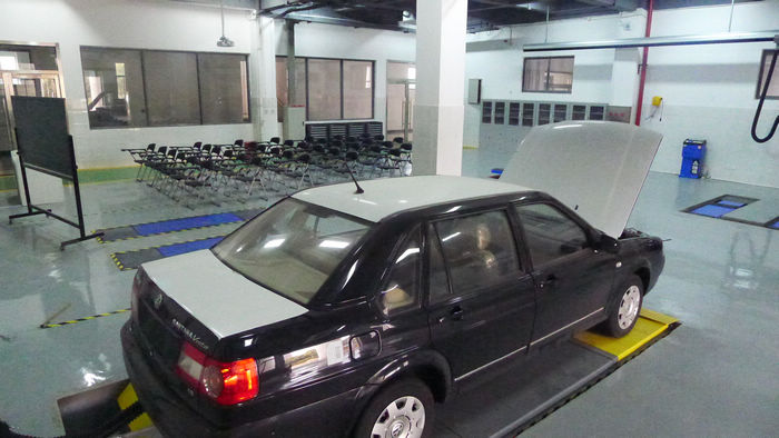汽车实训基地是学院于2011开始建设的,现有建筑面积1800平方米,教学实训设备1000余套,总价值近700万元,由五个一体化实训室、两个汽车仿真实训室和一个汽车美容实训中心组成。各实训室的功能如下: