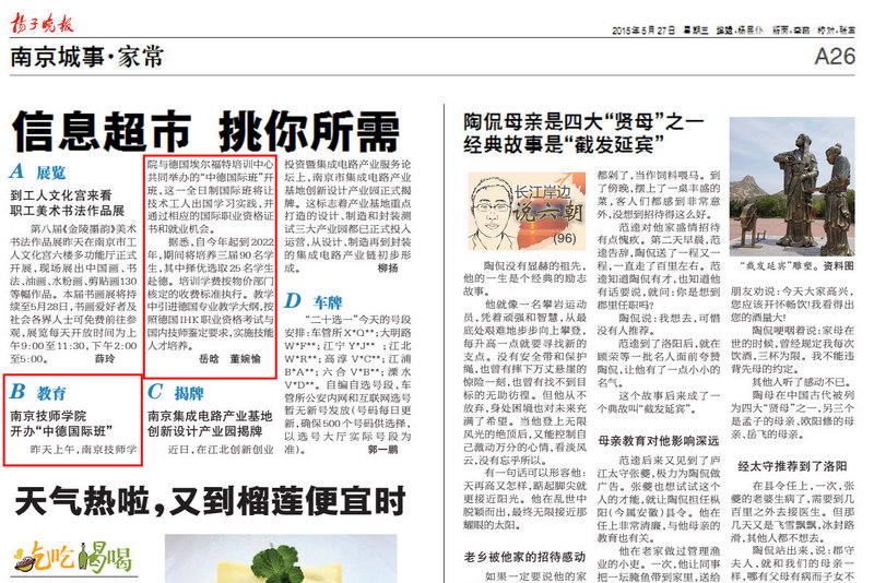 《扬子晚报》A26版—MK在线(中国)唯一官方网站开办“中德国际班”