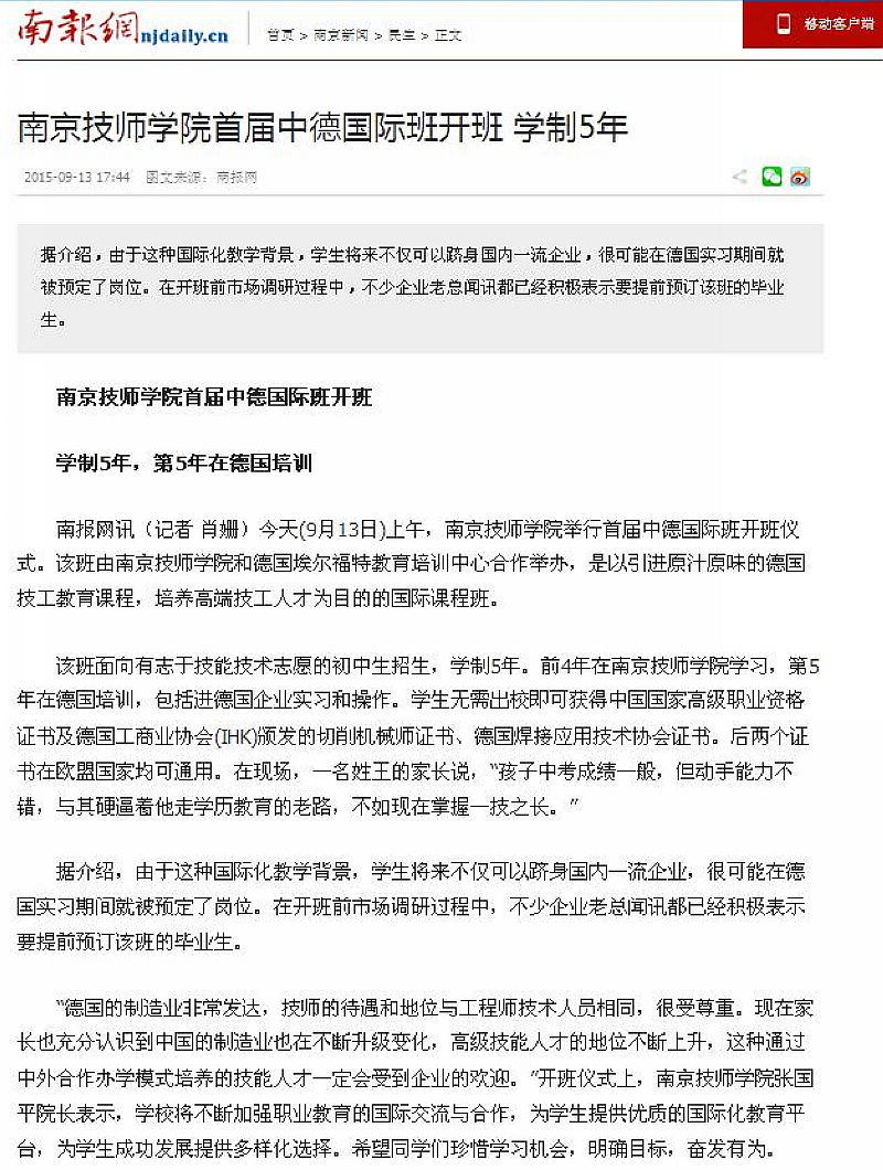 《南报网》-MK在线(中国)唯一官方网站首届中德国际班开班 学制5年