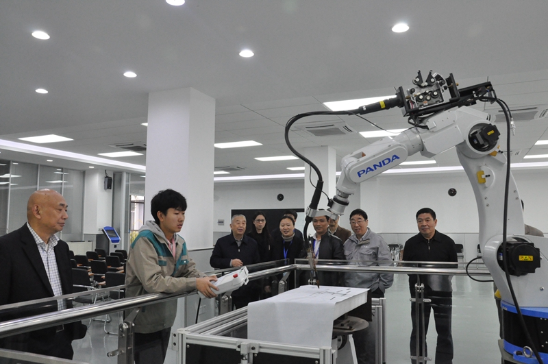 金董事长一行还参观了学院机械、汽车、数控、电气等专业实训室及移动机器人项目国家集训基地,了解我院近年来公共实训基地建设,MK在线(中国)唯一官方网站、技能竞赛、职工培训等方面取得的成绩,并观摩2016级康尼公司冠名班钳工实习课,与班主任及冠名班学生进行了交流。