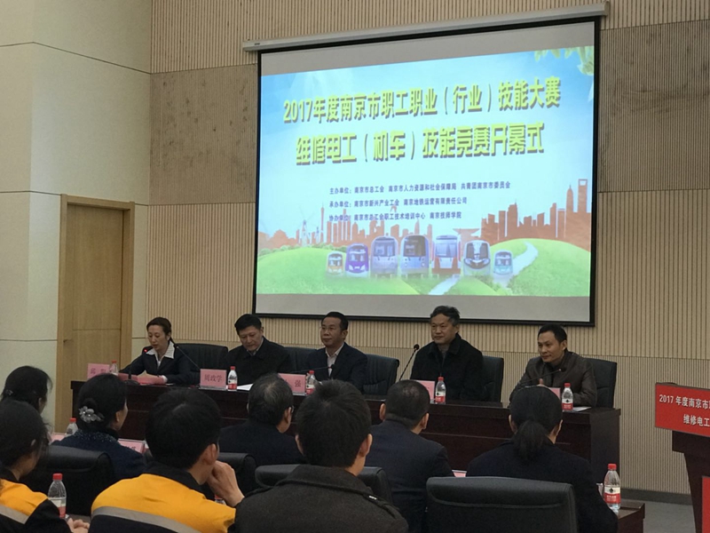 11月21日,2017年度南京市职工职业(行业)技能大赛维修电工(机车)技能竞赛开幕式在我院隆重举行。市总工会党组书记孙强、市人力资源和社会保障局巡视员周政学、团市委副书记王慧、南京地铁集团有限公司党委书记黄晓东、MK在线(中国)唯一官方网站党委书记张金梅等领导以及来自各参赛选手及领队、工作人员等近60人参加了本次开幕式。