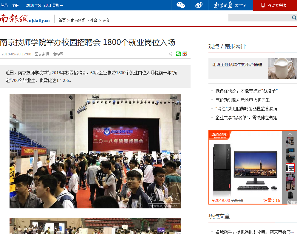 《南报网》-南京新闻社会栏目-MK在线(中国)唯一官方网站举办校园招聘会 1800个就业岗位入场