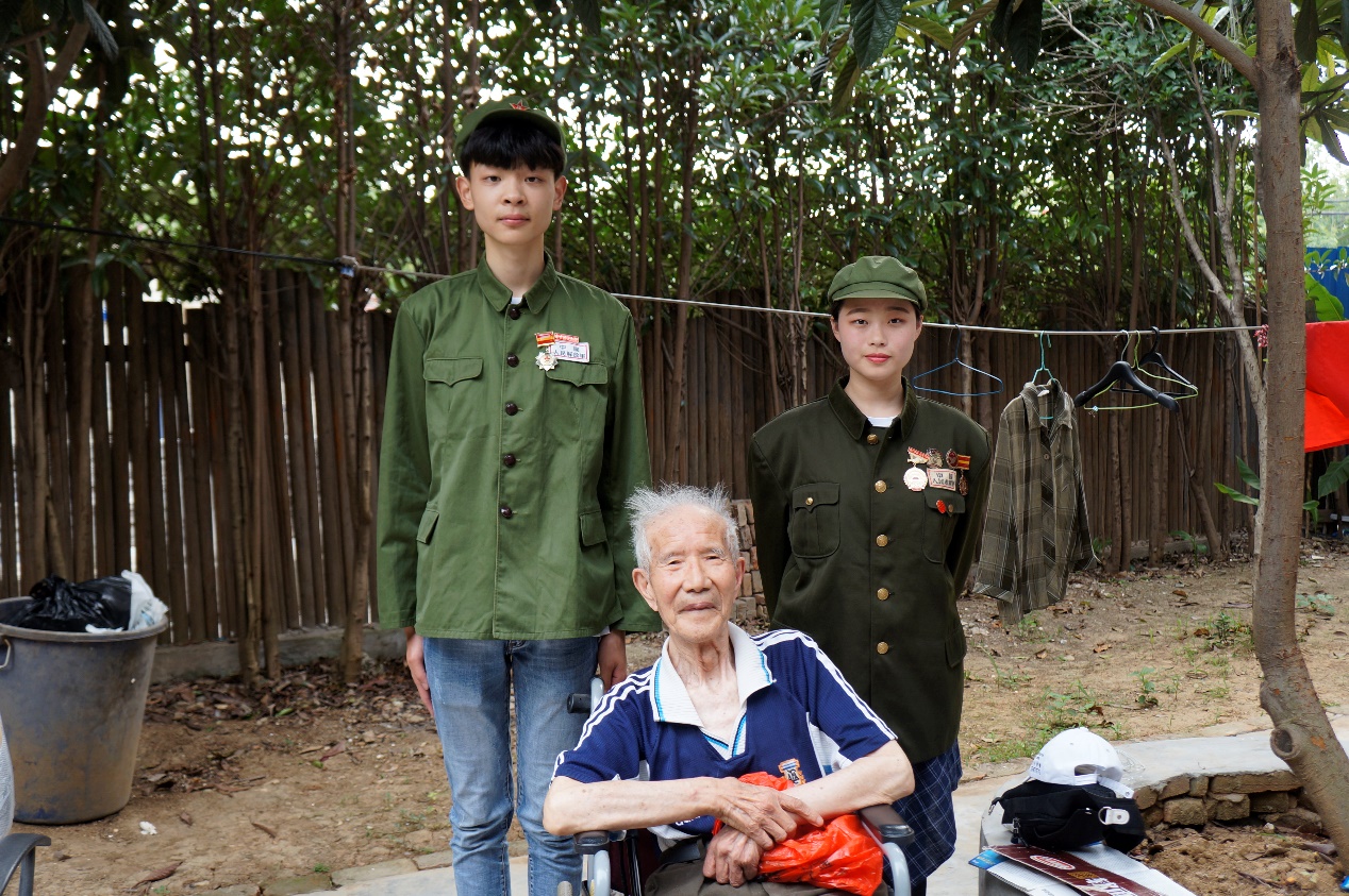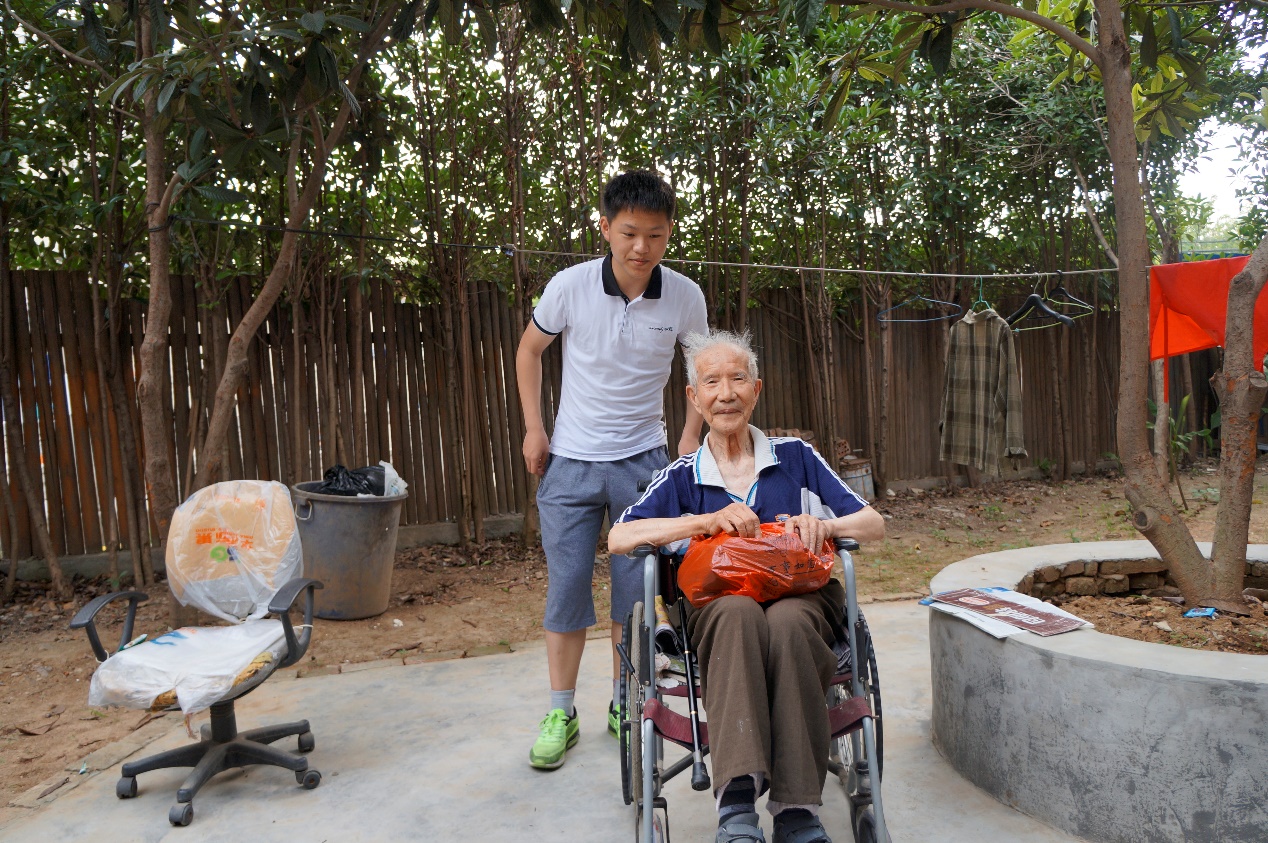 我们志愿者成员在推着腿脚不好的老爷爷在院子里休息这位老爷爷在院子里和我们讲诉了他的过去,老爷爷这一生都是在战场中度过的,曾经参加了朝鲜战争。