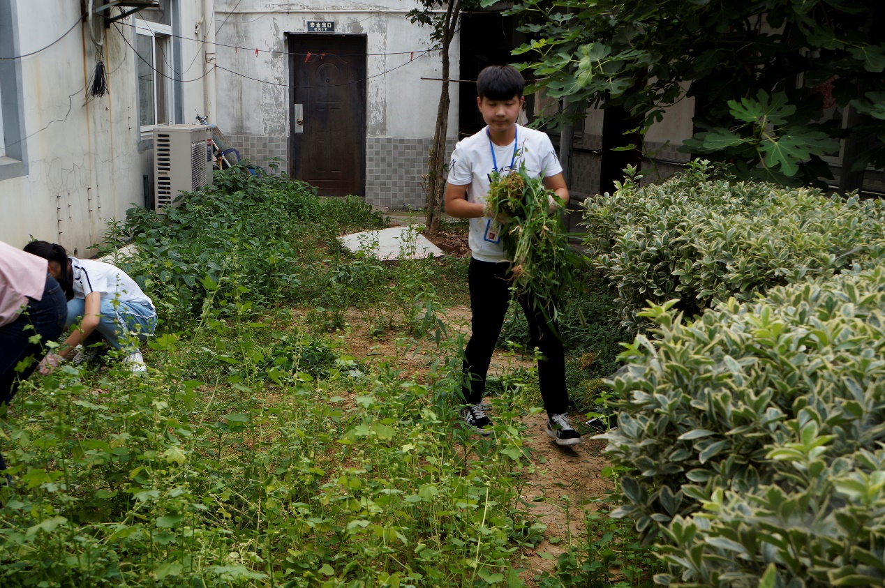 此时我们的志愿者们正在帮助养老院进行除草和倒垃圾不惧炎热,不惧蚊虫,不惧脏乱。