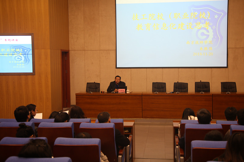 朱院长首先从国内国际教育新理念及大数据、智慧教室、移动互联等新技术角度分析了教育信息化建设的必然性。讲座围绕技工院校(职业院校)教育信息化建设的理由、目标、原则、目标、生活等内容进一步明确技工院校(职业院校)教育信息化建设的主要方面,朱院长还结合信息化工作实践,向大家介绍了我院教育信息化建设取得的工作实效及如何进一步借助教育信息化解决固定资产管理及学生管理等工作难题,并对学院信息化建设作出美好展望。最后,他强调,教育信息化建设任重道远,需要每个岗位人员从意识、行动等方面不断提高认识。