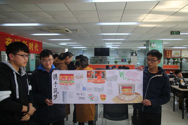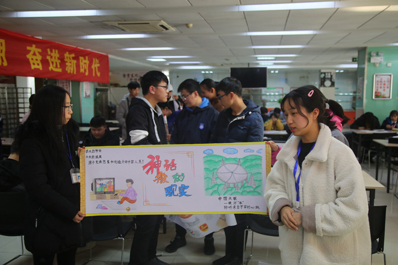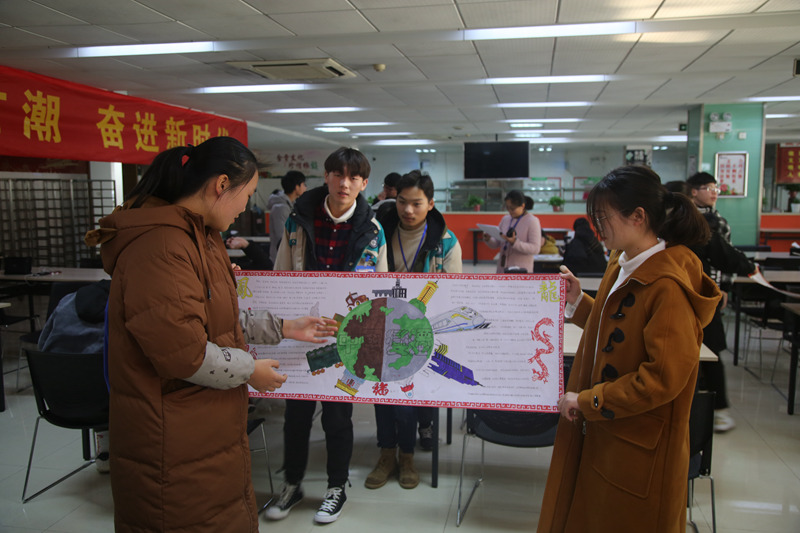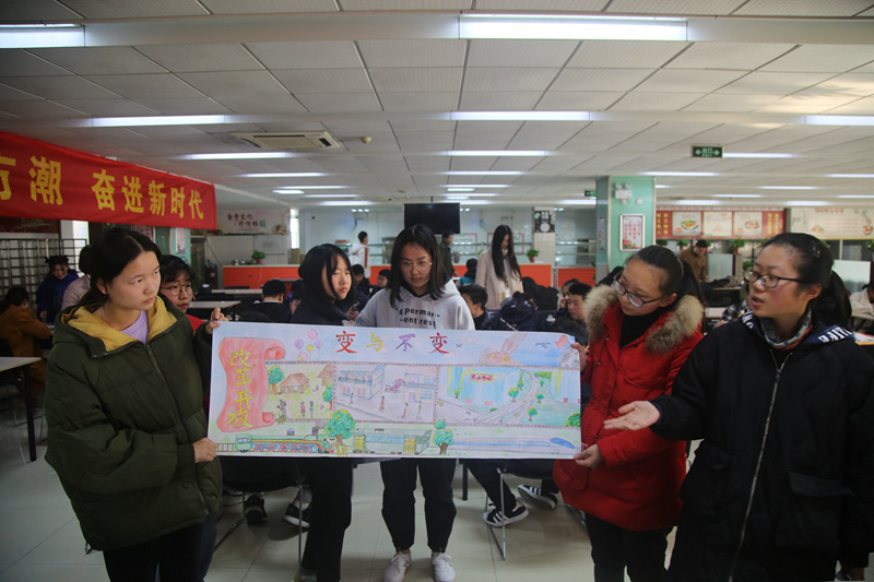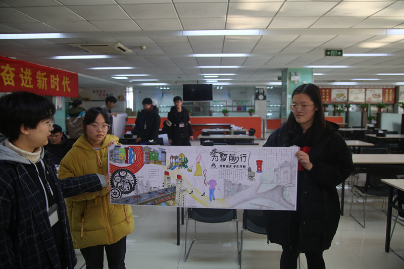 来自各系的共25组参赛队沐浴着经典歌曲《春天的故事》,在宽40厘米长121.8厘米的画纸上谱写了40年来中国社会发展的历史变革,比赛现场气氛热烈,参赛选手情绪高昂,参赛作品形式多样,描绘内容丰富有趣。