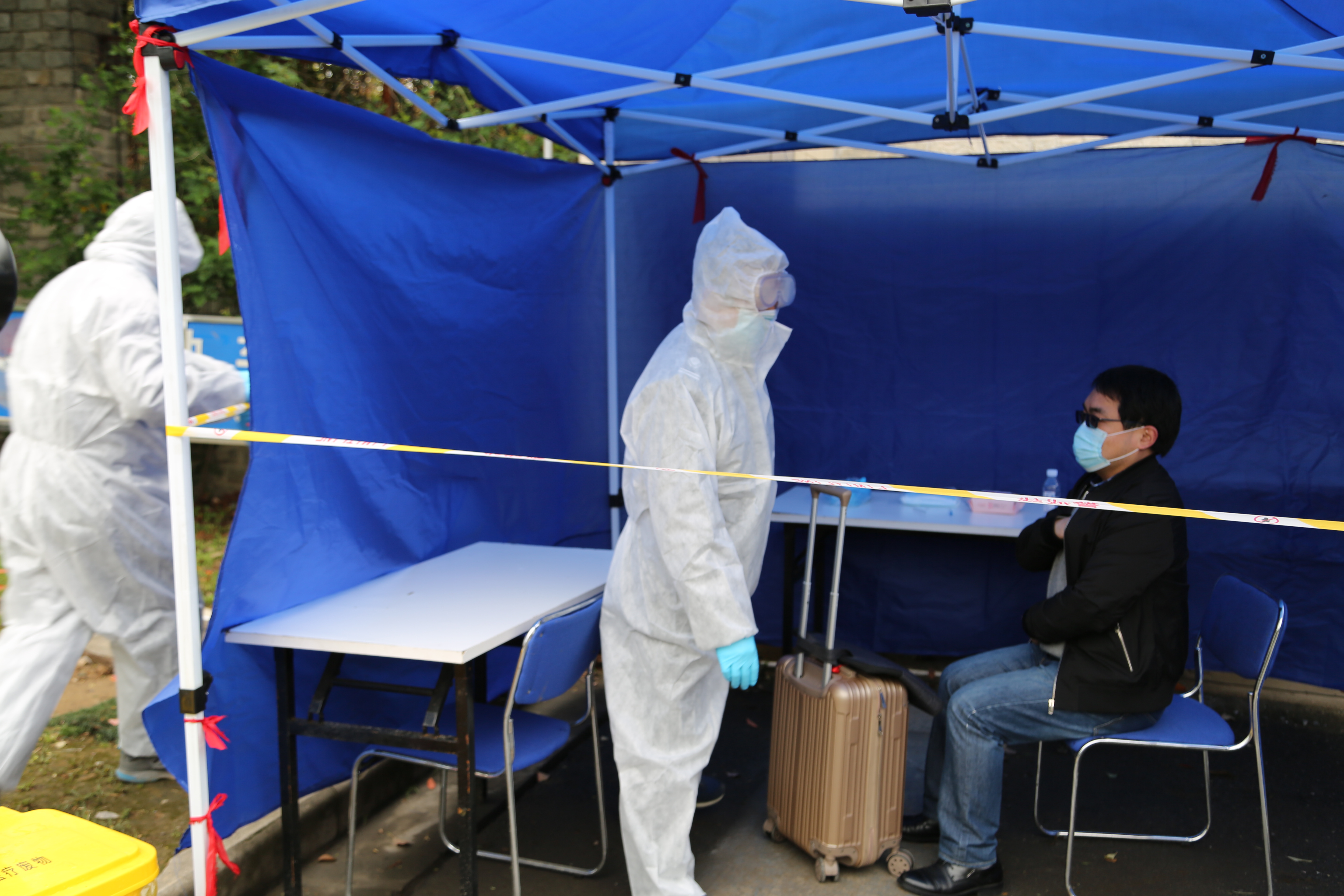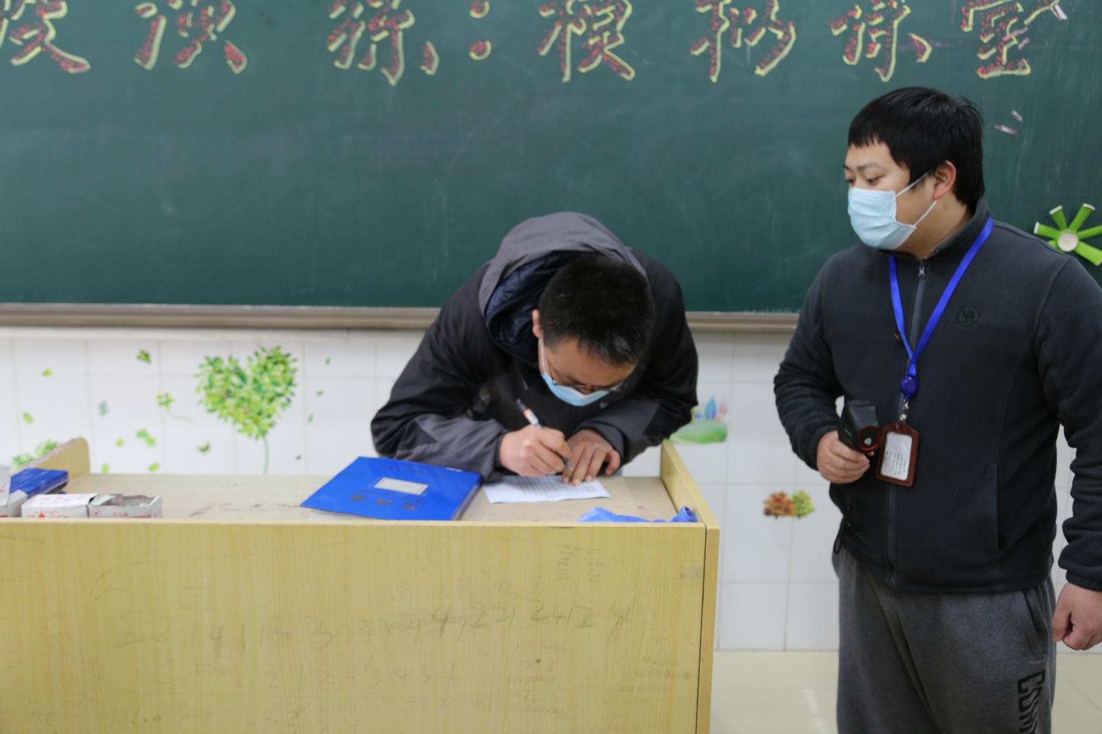 检测出某住校生体温超过37.3度,立即带到临时隔离点用水银温度计复测体温。