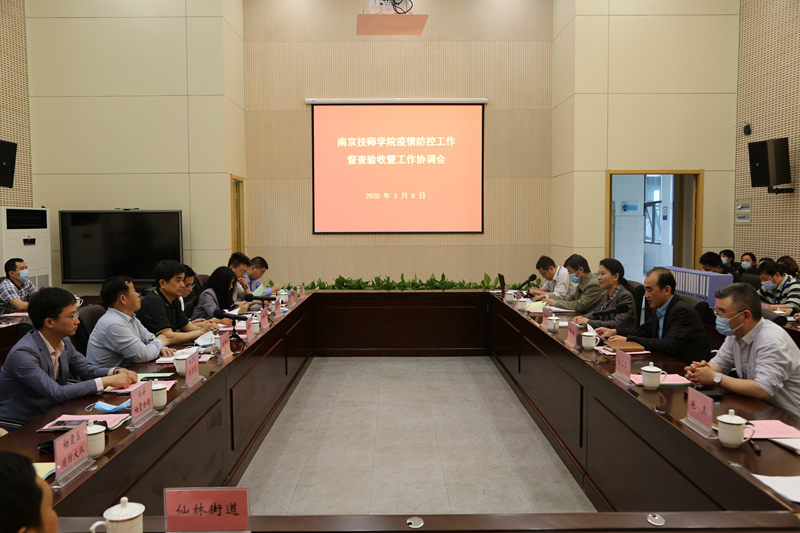 58日,仙林大学城管委会副巡视员盖立伟、栖霞区人社局局长梅华等领导率栖霞区疫情防控工作督查验收工作组一行来我院验收开学前准备工作。院党委书记张金梅,院长侯放,副院长王杭贵、金卫卫、朱胜强、赵杰,以及相关部门主要负责人陪同。