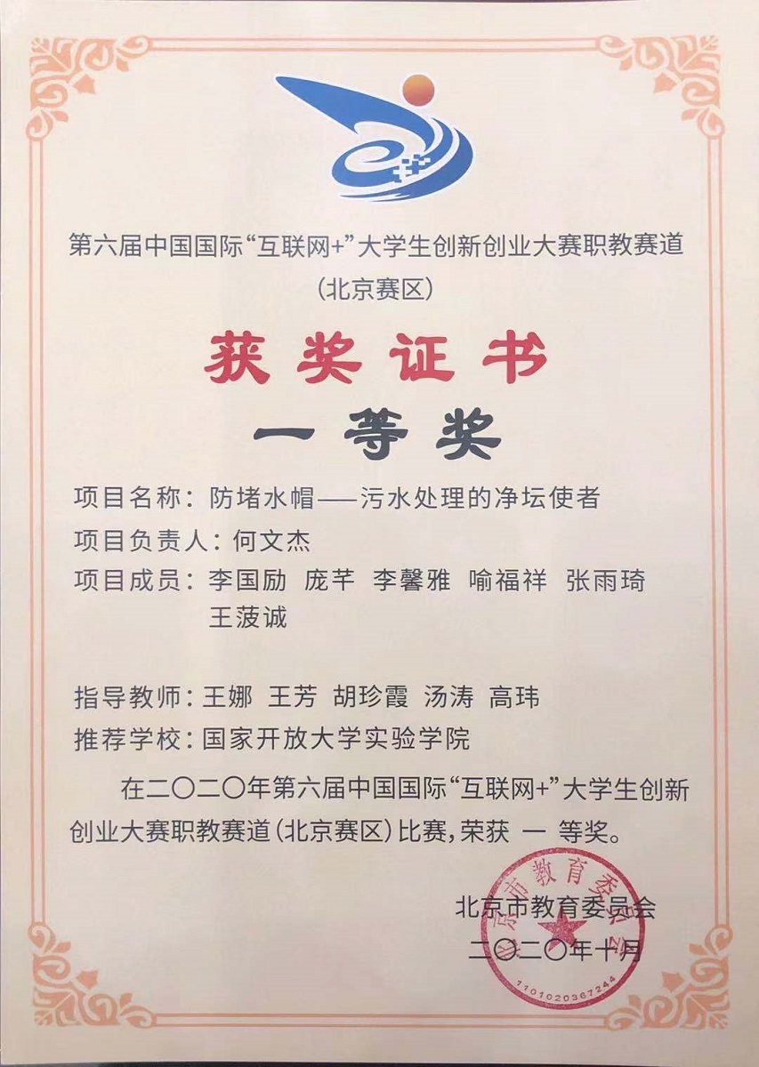 近日,由教育部等12个中央部委共同主办的第六届中国国际“互联网+”大学生创新创业大赛圆满收官,MK在线(中国)唯一官方网站参赛队代表国家开放大学实验学院参赛。在国家开放大学和技师学院相关部门的指导和支持下,一路过关斩将,喜获佳绩。“防堵水帽项目”荣获一等奖,“合创项目”荣获二等奖,四位老师被评为“优秀指导教师”,我院荣获国家开放大学实验学院“优秀组织奖”。12月10日,国家开放大学举办线上总结表彰会,国家开放大学实验学院副院长李新惠、刘颖出席,学生工作与教师发展部部长张峦峤、实验学院副院长郭青春为我院颁发奖状。