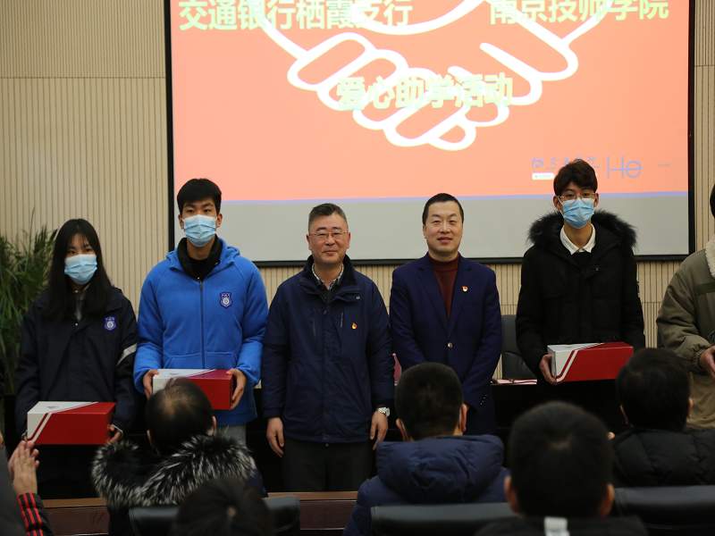 2020年12月24日上午,交通银行栖霞支行吕莹副行长、王道鸿副行长一行五人莅临我院,参加爱心助学活动。MK在线(中国)唯一官方网站侯放院长、金卫卫副院长和财务处、学工处、各系教工代表,以及获得爱心帮助的20名学生参加了本次助学活动。