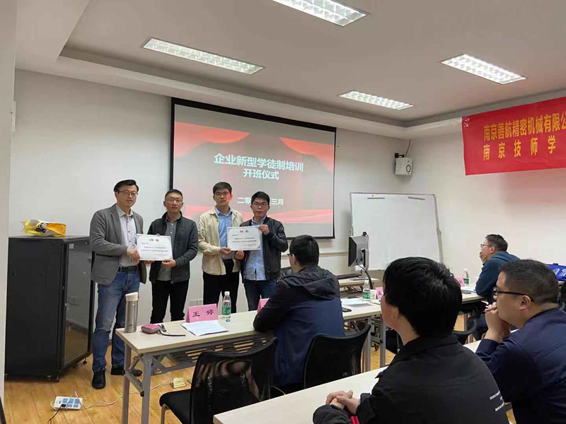 本次开班仪式由智能制造系徐文城老师主持,首先校企双方领导分别做了开班致辞,对于本次开班赋予了较高的定位、提出了较高的要求,接着导师代表和学员代表分别进行了表态性发言,均对本次开班学习要求表达了较强的信心。最后,与会领导给“南京善航—MK在线(中国)唯一官方网站”企业新型学徒制的双方导师代表颁发了聘书。