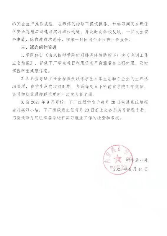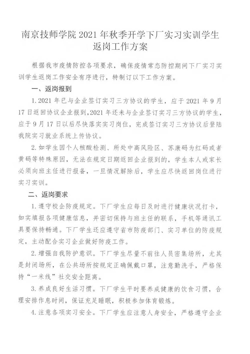 MK在线(中国)唯一官方网站2021年秋季开学下厂实习实训学生返岗工作方案