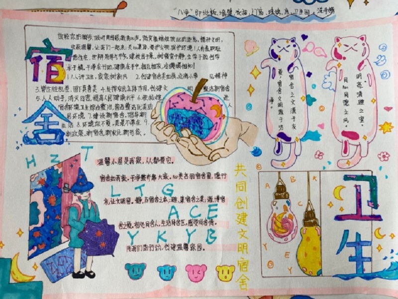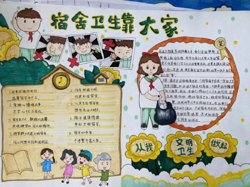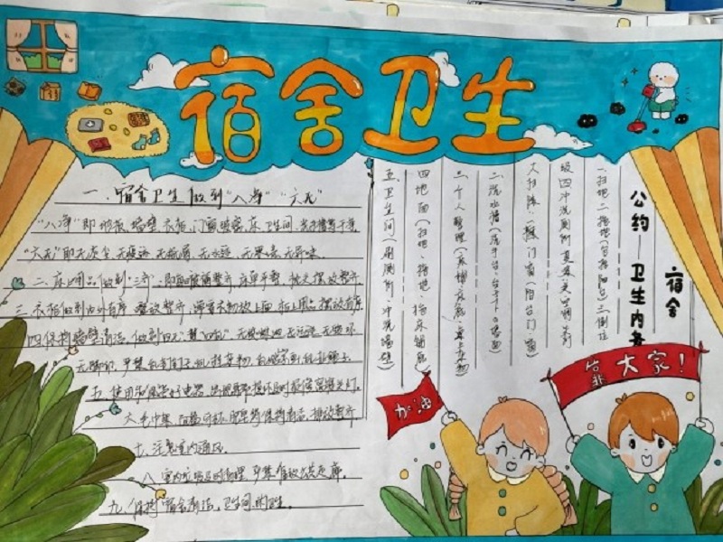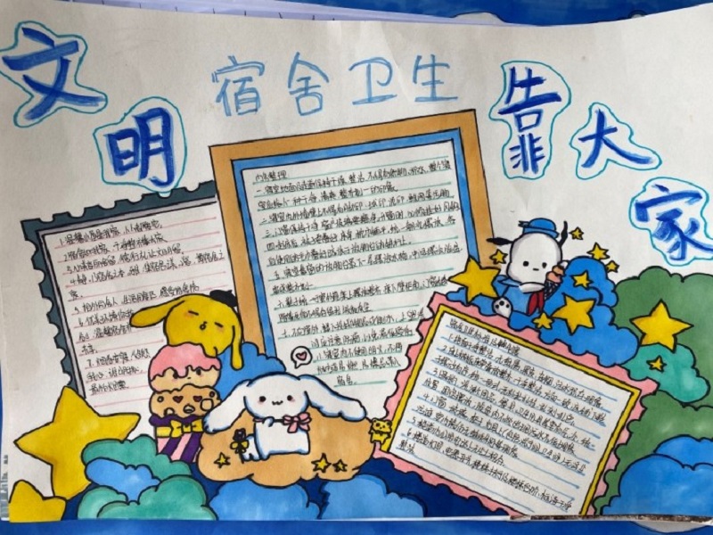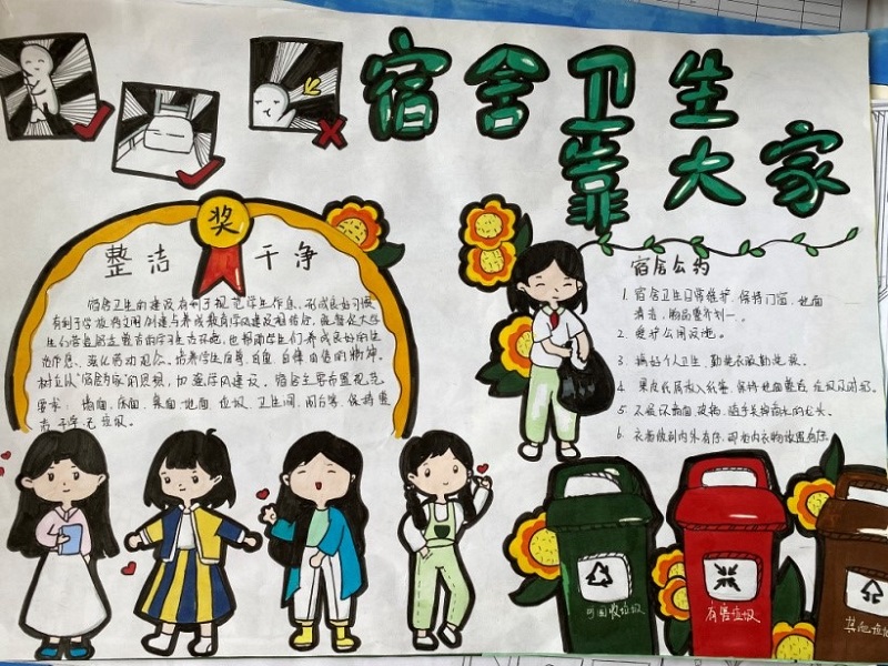我们在学校的生活,主要以寝室为中心,宿舍环境需要靠我们大家共同同努力,好的宿舍环境可以让我们的学习生活更加的愉悦。为弘扬正能量,丰富校园生活,为宿舍卫生整治做出自己的贡献,2021年10月现代服务系举办了全系学生的“宿舍卫生靠大家”手抄报比赛,并邀请了专业老师进行点评和打分。