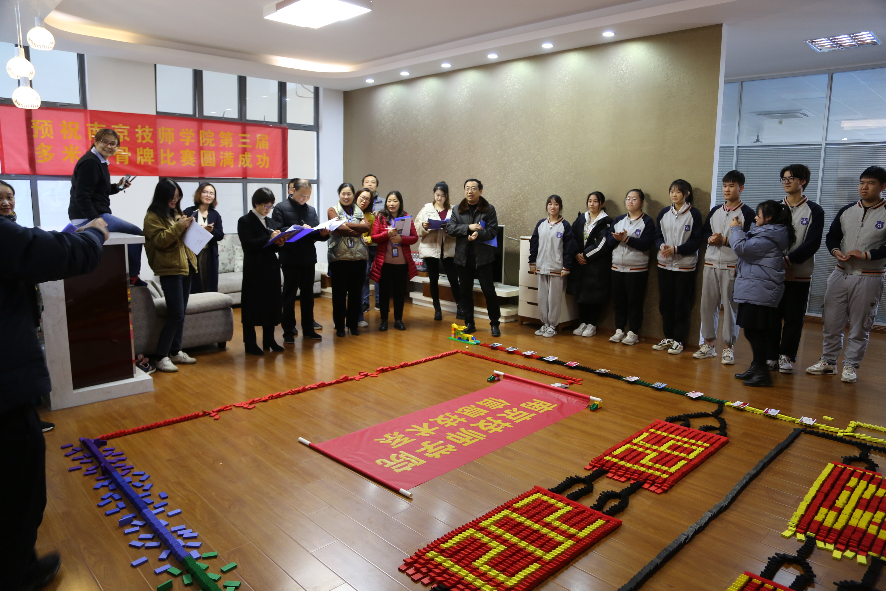 1210日下午,学院举办第三届多米诺骨牌比赛,此项比赛标志着学院第六届学生素质教育活动正式收官。本次比赛以系为单位,受疫情影响本届比赛由集中改为分散进行,化整为零,5支参赛队伍在各自准备的场地内紧贴“庆祝建党100周年”的主题,用心设计、精心拼搭,经过2小时的努力,以无穷的想象力将3200片骨牌展现出富有深刻寓意的图案。其中,信息技术系以“中国共产党百年历史的四个历史时期”为主线设计作品,智能制造系采用“无人机推倒技术”独特创意,使得比赛更具趣味性、挑战性和竞争性,博得在场观众们好评如潮。评委们秉持公平公正的原则,根据参赛作品的技术难度、观赏性、推倒成功率、寓意和使用的骨牌数等五大模块进行综合评分,共评出一等奖1个,二等奖2个,三等奖2个。