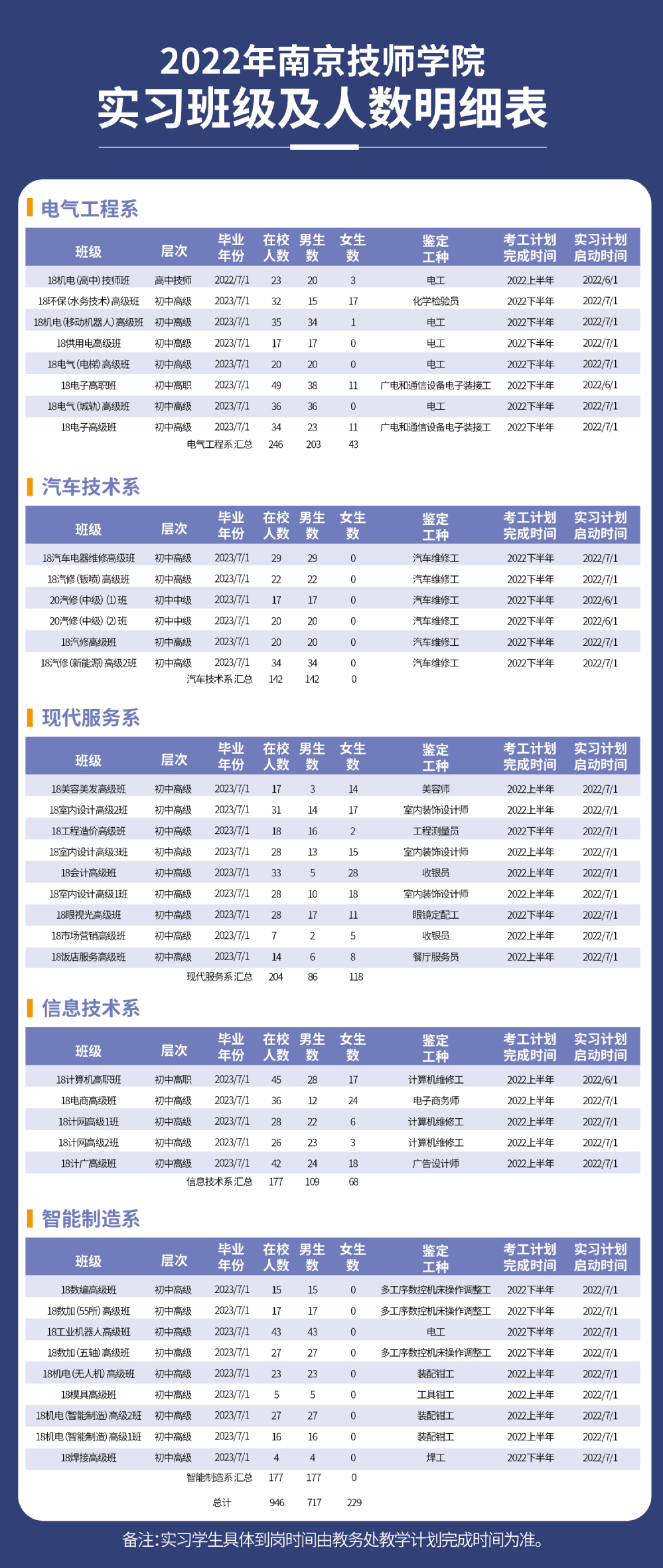 2022年MK在线(中国)唯一官方网站实习班级及人数明细表