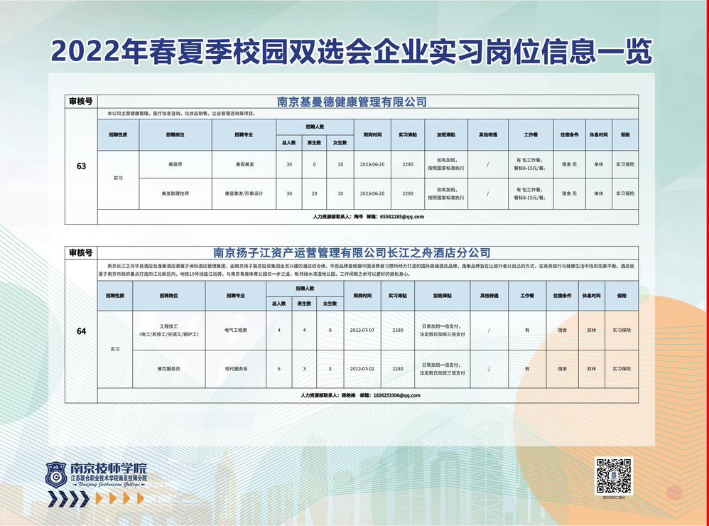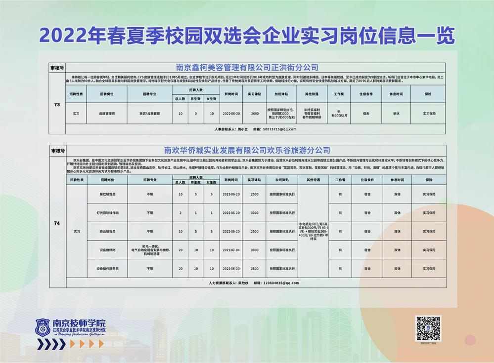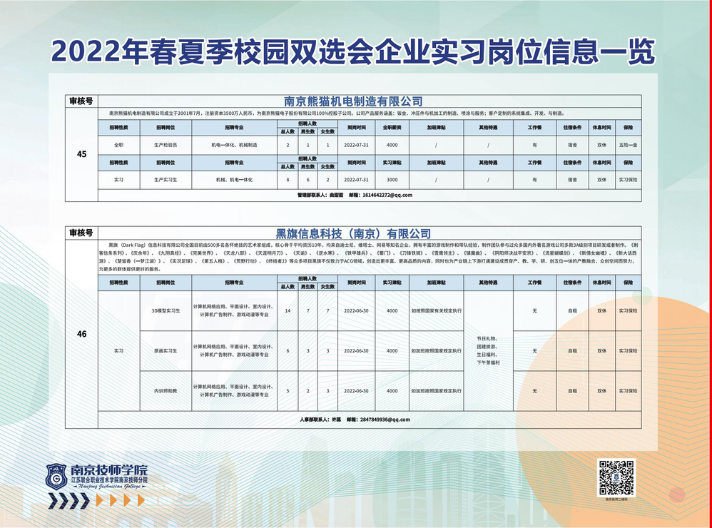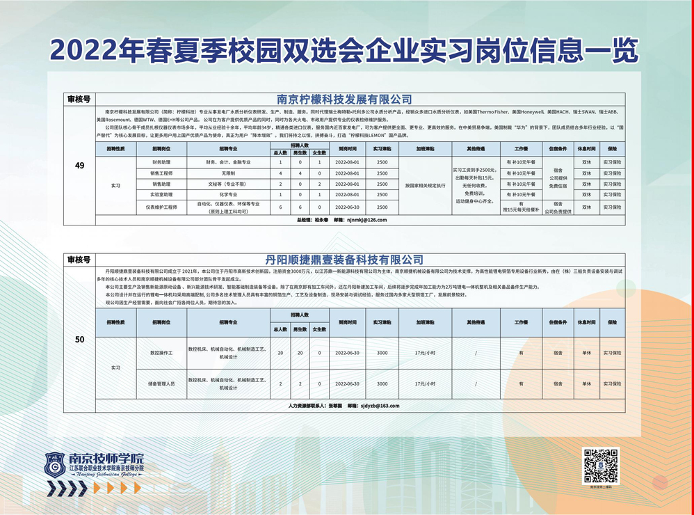 2022年春夏季校园双选会企业实习岗位信息一览
