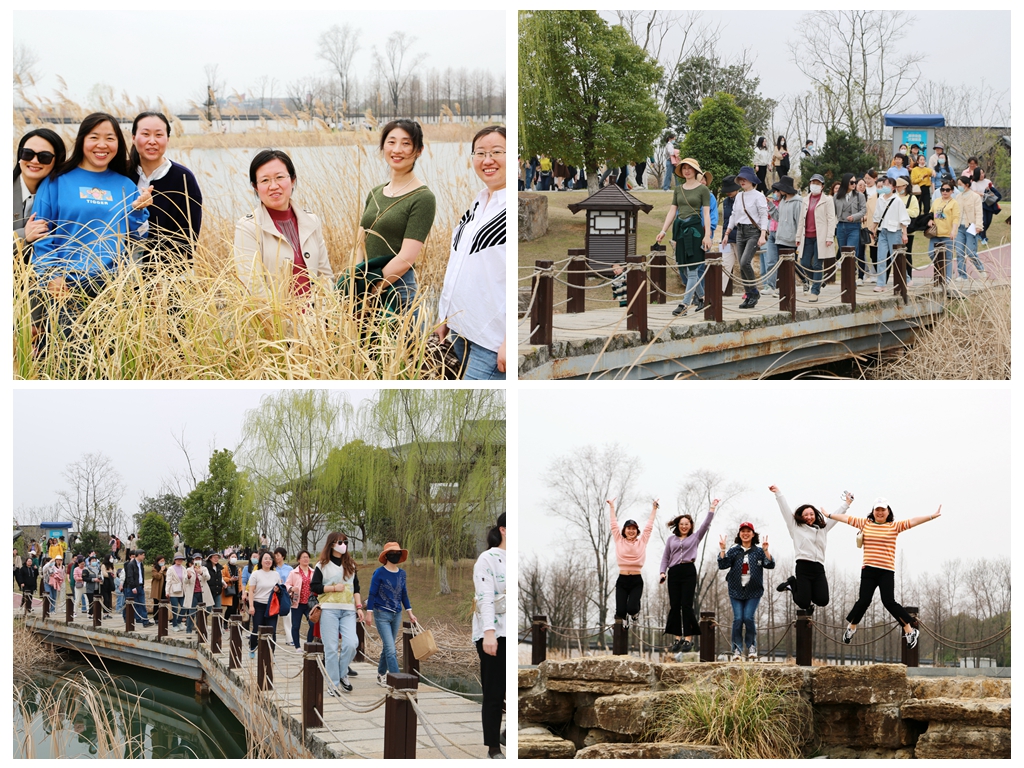 春临盛世三月天,姹紫嫣红映红颜,在汤山金乌温泉公园,女教工们欣赏着春意盎然的自然风光,体会着温泉水的暖意,快乐的氛围陶醉着每个人,大家与花草相依、与春天同行,既锻炼了身体,又愉悦了心情。