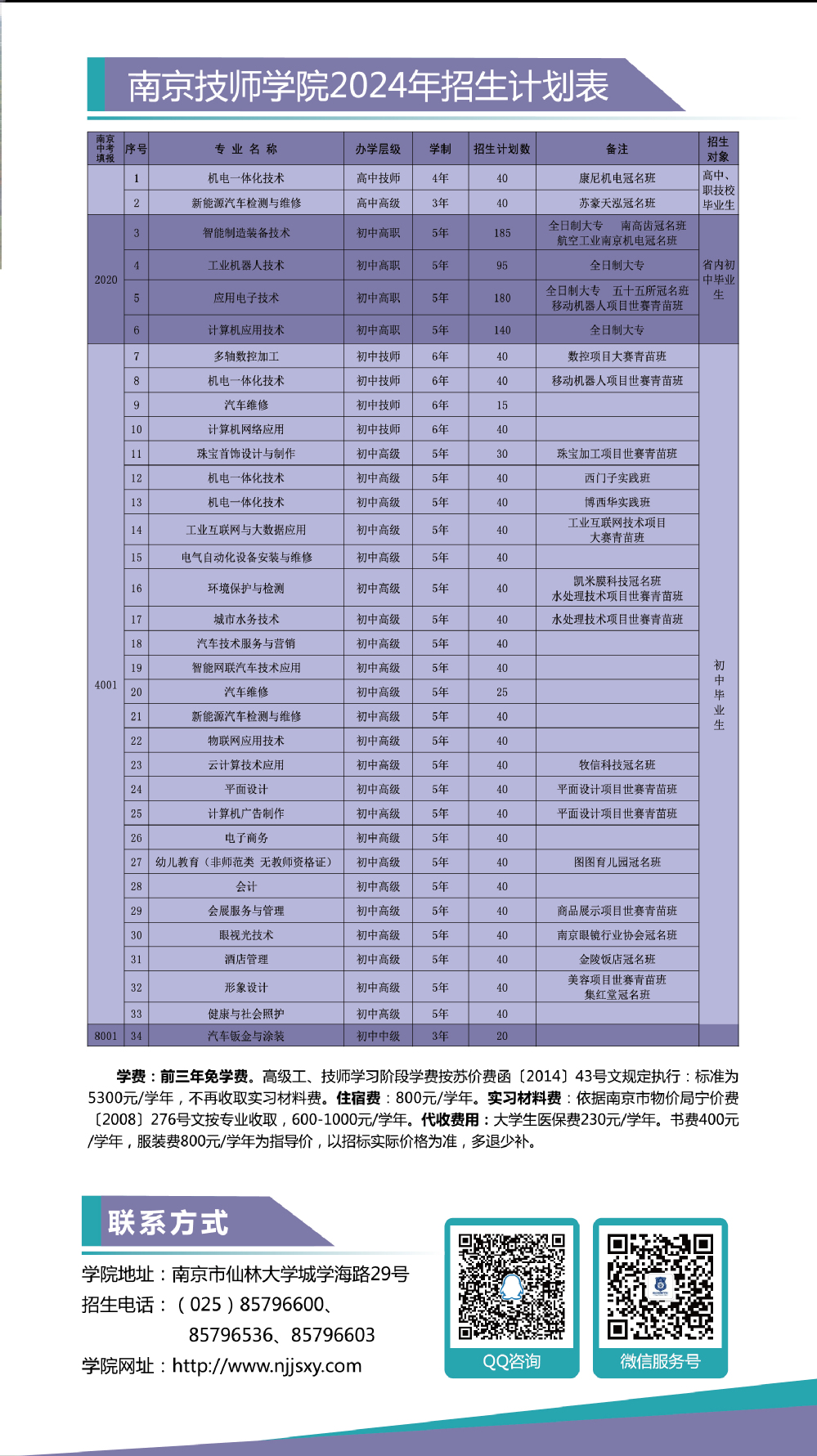 招生计划表