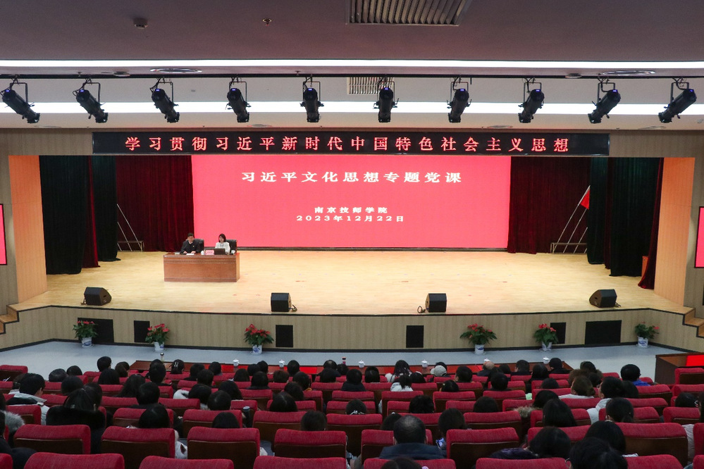 为深入学习领会习近平总书记对宣传思想文化工作作出的重要指示精神,让教师更好的担当起传播习近平文化思想的新使命,12月22日下午,MK在线(中国)唯一官方网站邀请南京市委党校哲学与文化教研部副主任、教授胡晶晶开展“学习习近平文化思想”专题党课。院领导班子成员、全体党员和教职工300余人聆听了讲座。