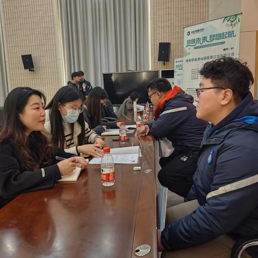 在交流环节,企业面试官与学生进行了深入沟通。针对学生们感兴趣的有薪酬福利、住宿条件、晋升空间和工作环境等条件,企业方进行了详细的解答,也对学生的个人情况、技能水平和求职意向有了初步了解。