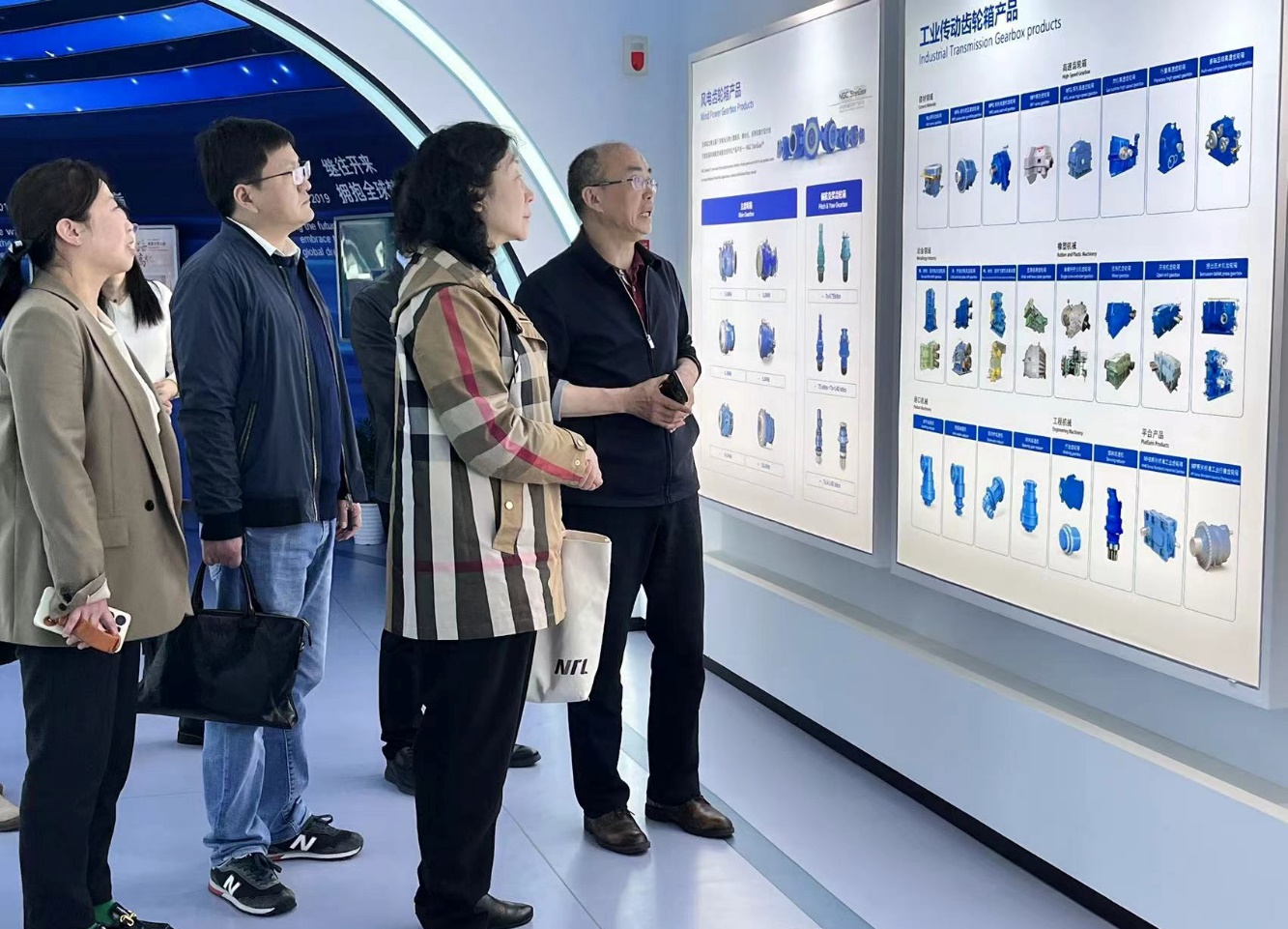 蒋书记对南京高速齿轮制造有限公司长期以来给予学院的支持和响应表示感谢,她希望校企双方进一步深化合作,促进专业教学与企业生产紧密结合,要继续加强社会培训方面的合作,不断探讨校企在工学一体、基地建设、技能大赛等方面的合作空间,持续实现校企优势互补、资源共享、合作双赢。王总监陪同调研团队前往公司展厅,向调研团队介绍了企业的发展史和企业主要产品,展示了公司在清洁能源、低耗和高效领域的持续创新与投入。