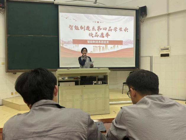 2024422日下午,智能制造系学生会在四栋阶梯教室隆重召开第四届学生会换届选举大会。出席本次大会担任评委有:智能制造系林润海主任,智能制造系团总支书记周树亮老师,第三届学生会主席鹿江南同学,第三届学生会副主席陈俊元同学。