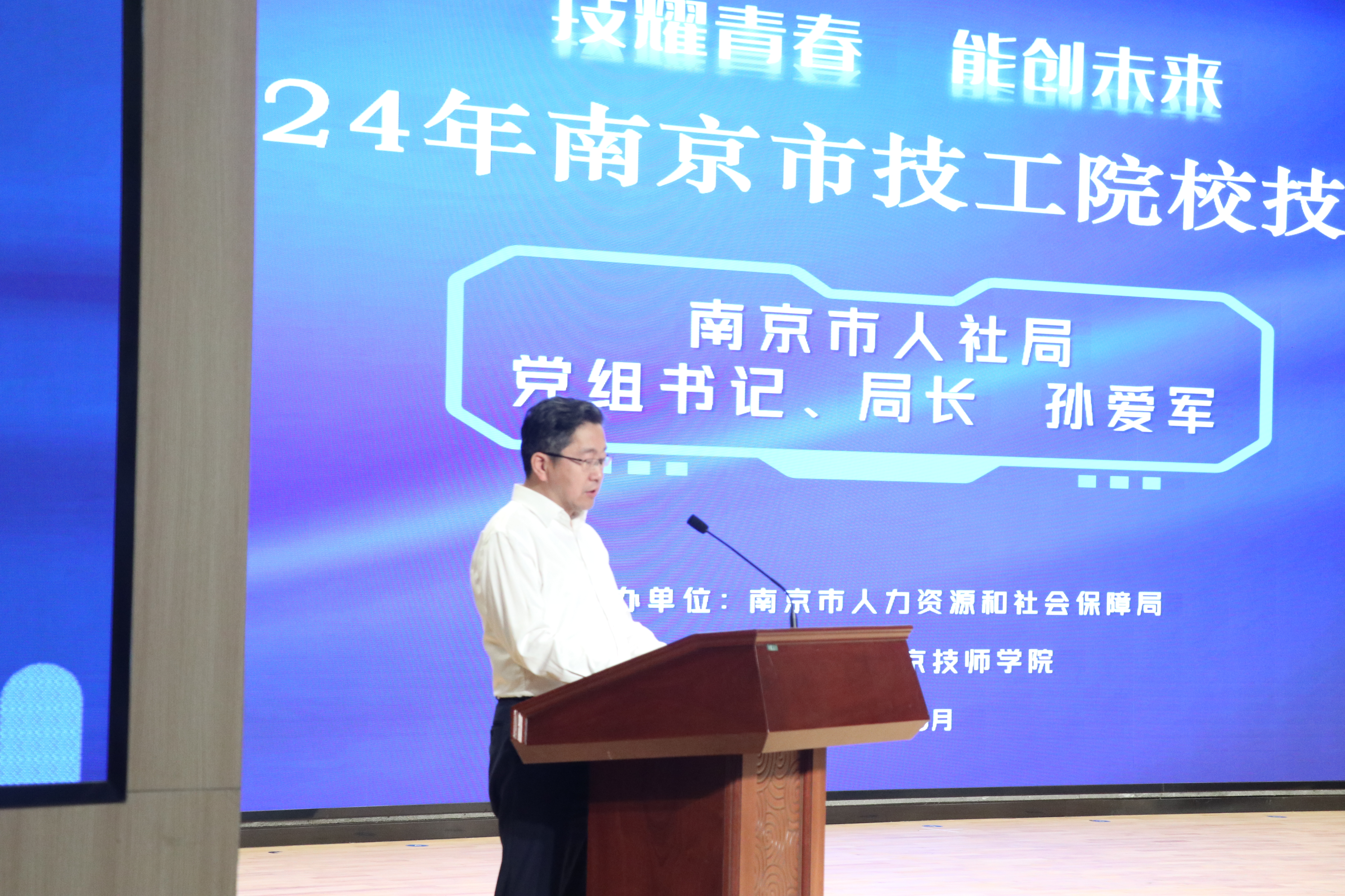 6月4日,2024年南京市技工院校技能周活动在MK在线(中国)唯一官方网站隆重启动。市人社局党组书记、局长孙爱军,副书记、副局长施军,一级调研员吴传军,全国人大代表、大国工匠孙景南及学院党委书记蒋可,院长侯放,副院长朱胜强、赵杰等同志出席启动仪式。来自全市10家技工院校的领导班子和师生代表欢聚一堂,共享“技耀青春,能创未来”技能周活动盛宴。启动仪式由市人社局职建处处长朱清怡主持。
