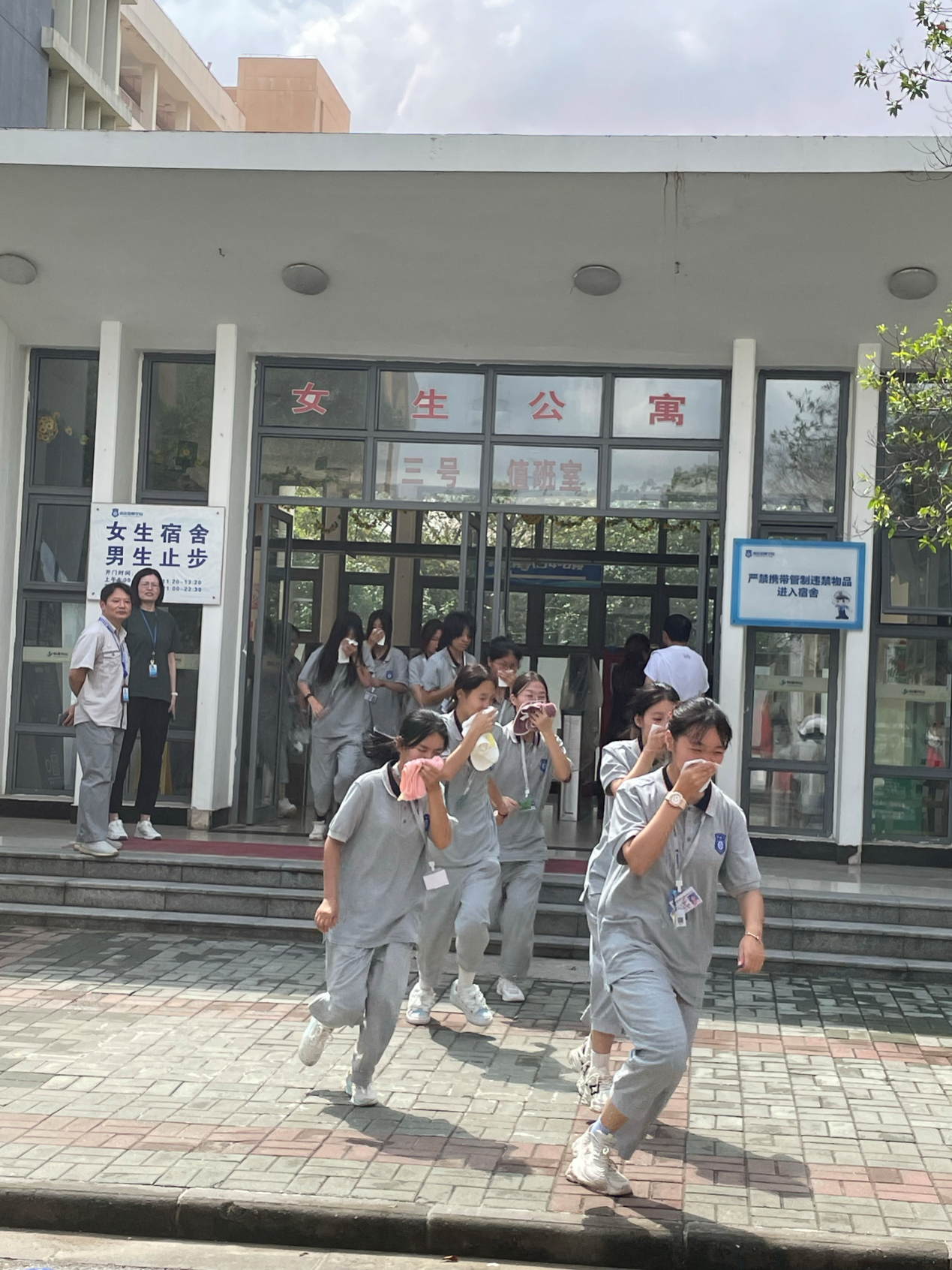 以“练”为要。学院组织制定了应急疏散演练预案,明确了演练全过程要素。随着一声声急促的哨响,同学们采用“弯腰、捂鼻、靠墙”的逃生动作,快速、有序、安全地从宿舍疏散到了指定位置。本次演练切实增强了新生安全防范意识和安全自救能力。