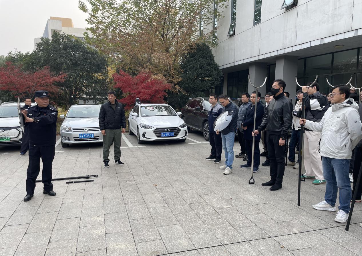 演练前,学院制定了详细的演练预案,由院安全稳定工作领导小组统一指挥并做好周密布置。张警官从警棍、盾牌、钢叉、抓捕器等防暴器材的正确使用,最小应急单元“二对一”“三对一”战术对抗的实施等方面,为安保处、青年教工应急队、保安队进行了安全技能培训,并提出了安全防范要求。