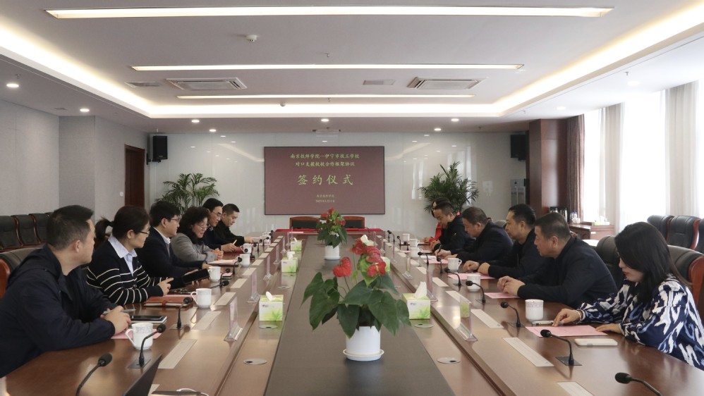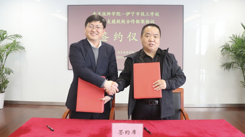 为深入贯彻落实南京市对口支援新疆伊犁州伊宁市工作部署,根据南京市人社局、伊宁市人社局指导意见,学院与伊宁市技工学校深化校校合作机制,充分发挥技工院校培养技能人才的主渠道、主阵地作用。近日,伊宁市人社局副局长郭长杰、培训科科长孙长清、伊宁市技工学校校长党龙欧等一行6人来校考察交流,对接对口支援落实具体方案,并签署《校校合作框架协议》。学院党委书记蒋可、院长侯放、副院长赵杰等领导班子成员出席签约仪式。