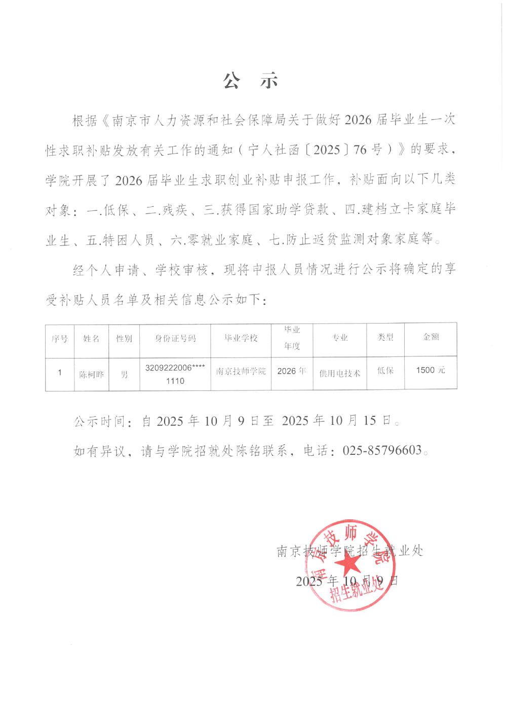 2026届毕业生求职创业补贴申报公示
