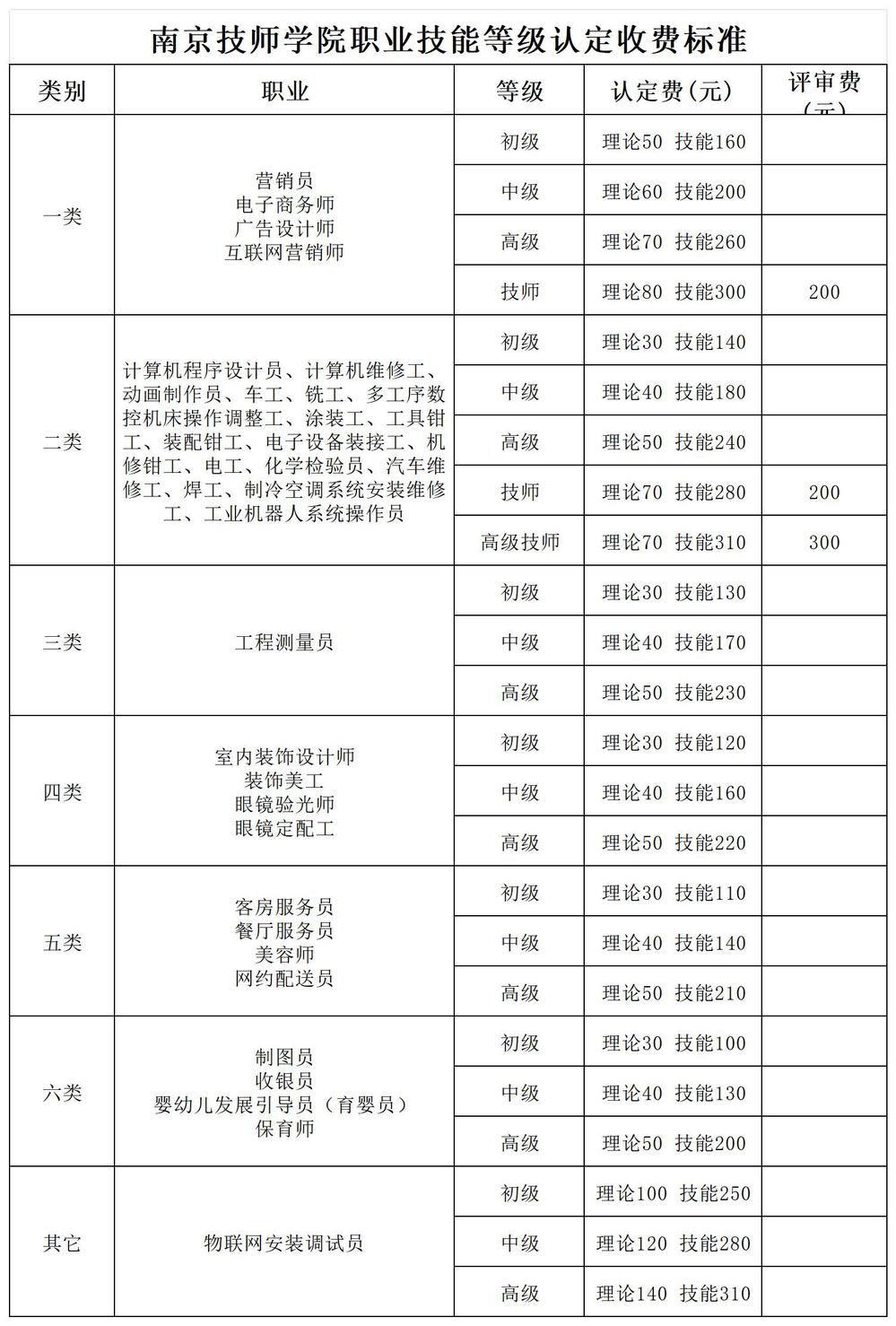 MK在线(中国)唯一官方网站职业技能等级认定收费项目标准